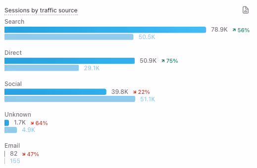 Search traffic grew by 56%, bringing in an additional ~28,000 visitors.